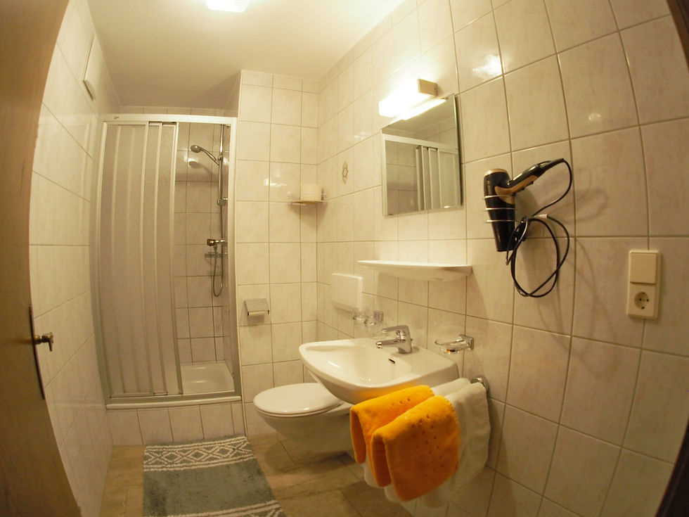 Im Erdgeschoss befinden sich ein Schlafzimmer mit eigenem Bad, ein Heizraum mit Skischuhtrockner, Waschmaschine und Trockner, sowie ein Skiabstellplatz und ein Fahrradabstellplatz.